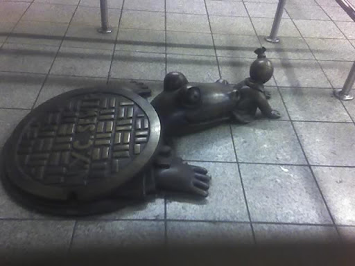 I wish that this last one came out a bit better. Maybe next time. Now that I think about it, there weren't many "money" people. There was another on the way up that was really shiny because a lot of people touched it on the up and down the stairs.